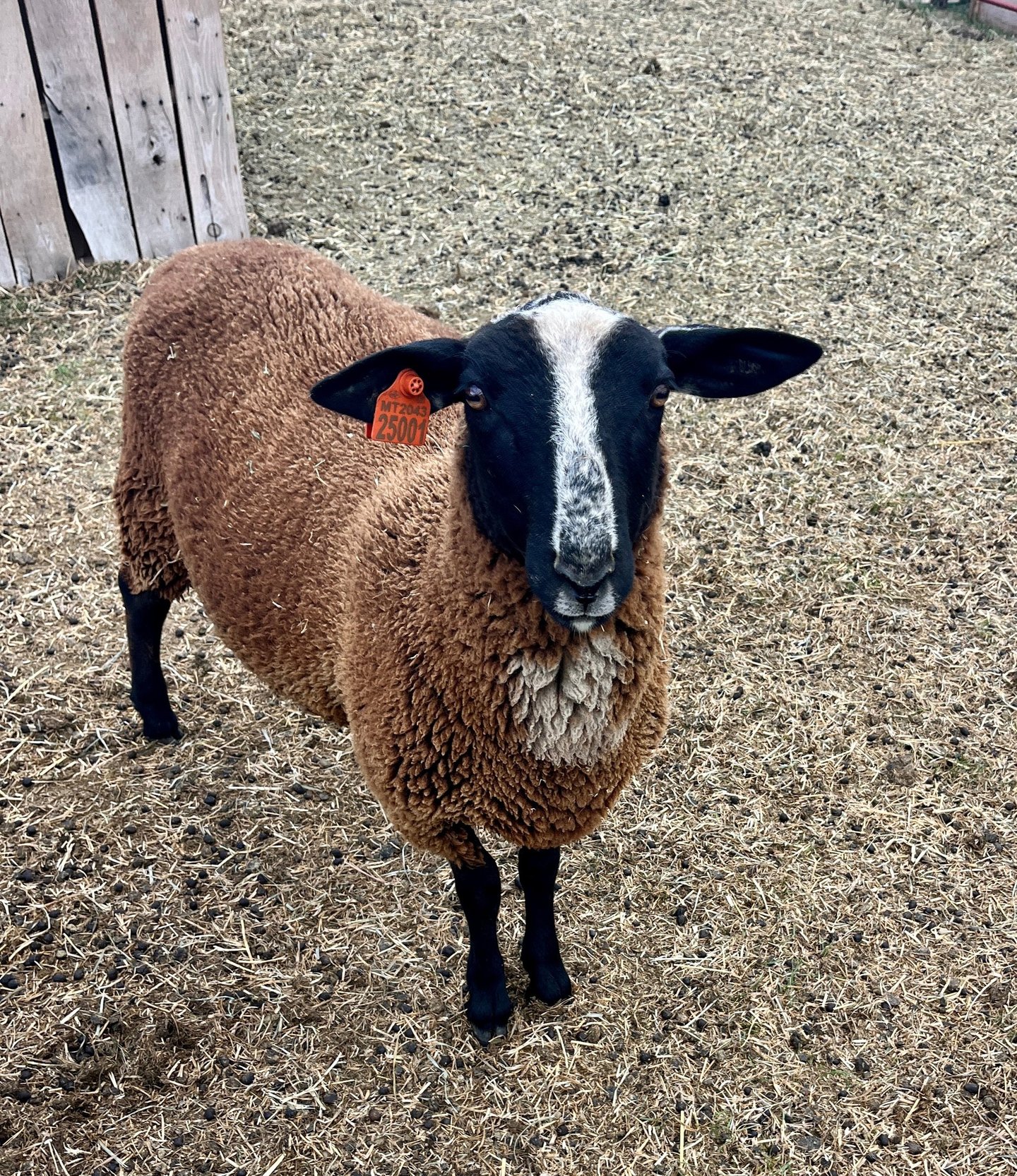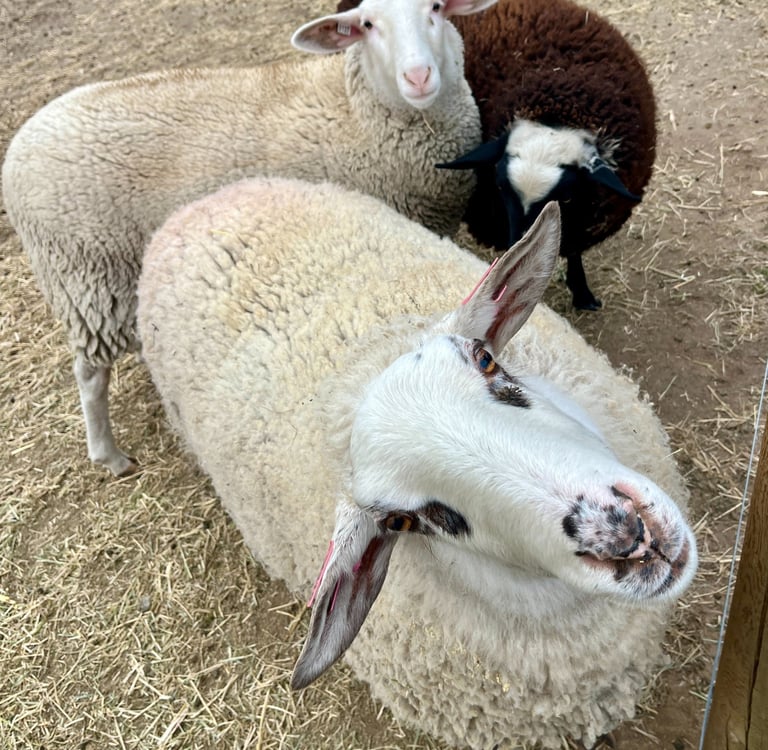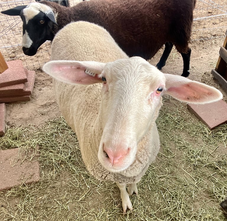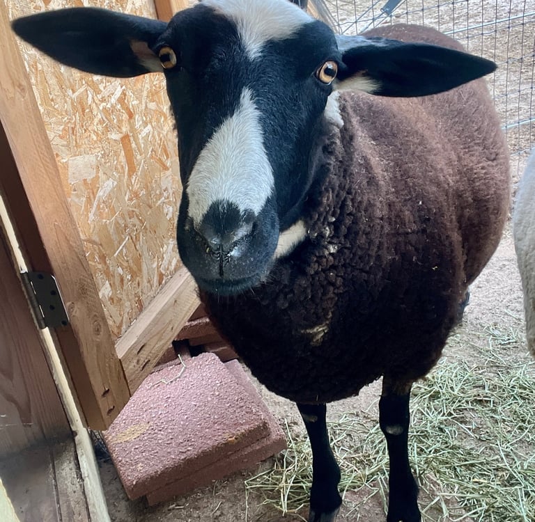 Rosie was born in April 2024 in Colorado. She is a 66% East Friesian, 20% Lacaune, 14% Polypay dairy ewe who we also decided not to breed her first year to give us time to learn. Rosie is very personable, curious and sweet and will surely be a fantastic mama next spring.